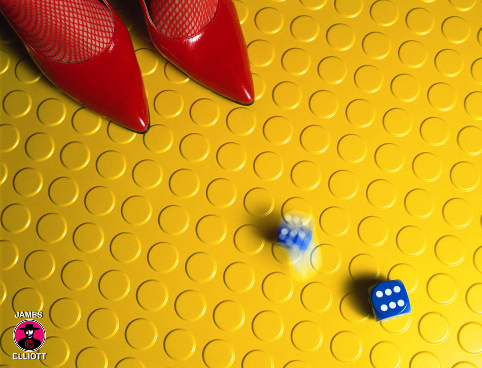 Partly inspired, as was much of Elliott’s early work, by music. In this case “Tumbling Dice” by the Rolling Stones. Elliott also loves and frequents casinos for the sheer glamour of it. Although he never gambles. As he says “I’ve gambled my life on Art - that’s enough.” Perhaps that is the real expression here. The juxtaposition of angles, geometry and dynamic dice, create a superb eye wrenching image.