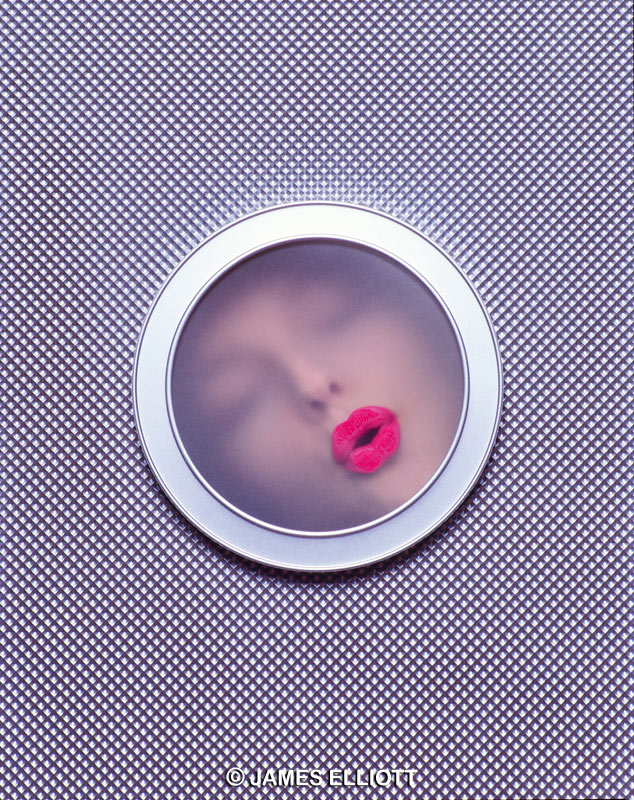 On the surface this is Elliott in a lighter vein, closer study reveals an effortless mastery. The vivid scarlet kiss is luscious, sensual and inviting, the surroundings cold, neutral, mechanical and lifeless.