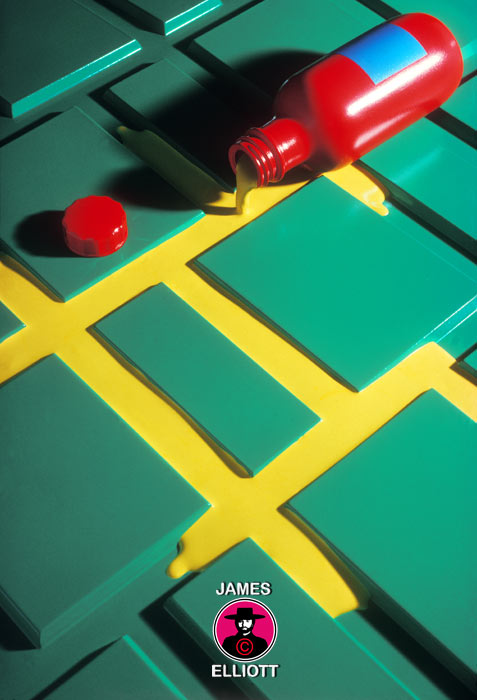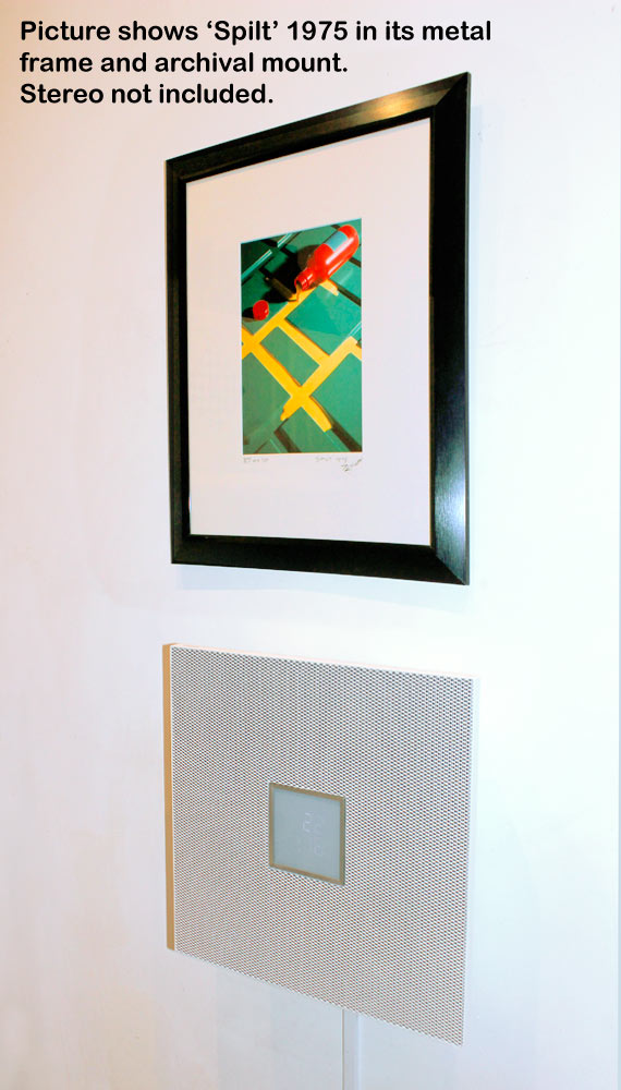 Spilt 1975 Unique World Edition Of Originals: 10 (2 available) Size Of Piece: 12 inch Size Of Frame: 22 x 18 inches Original Type: 45 year old Cibachrome Deluxe Vintage Print Hand Printed by The Artist In The 70s Price Please Enquire SIGNED BY THE ARTIST IN STOCK ARCHIVALLY MOUNTED AND FRAMED 'Spilt' of 1975 is a diminutive masterpiece for Elliott, being only around 12 inches high, but it remains eternally and disproportionally popular. Elliott's ability to finely balance the abstract and the figurative is unrivalled. It shares many qualities with magnum opus 'Pseudosynthesis' of 1976' . The use of block colour used with huge confidence and the synthesised bottle are both precursors of colours, contrasts and shapes to come. This colouration was hugely influential on the 1970s. So it is an important piece in the canon. It has to be observed that even at this early stage Elliott was creating every square millimetre of the frame, like an artist sculpting and painting his art into physicality. Elliott's ability to create timeless art right from the outset is truly extraordinary as he knew nothing about art. Great picture to start a collection with. Fascinating little jewel of art.