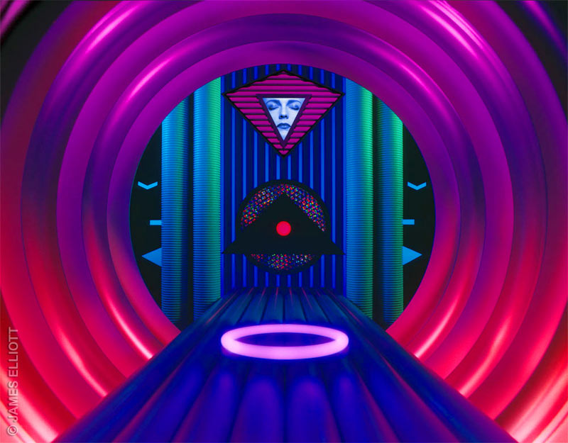 An entire summer from May to September 1986. This ground-breaking 'Light Sculpture' took Photography to a new level. Note the barely perceptible sentinel faces. A dazzlingly imaginative piece, the technical virtuosity is equally staggering. 165 test exposures, 40 Polaroids, 21 lights, a 76 action exposure sequence.... the list goes on. The image predates and is superior to, the computer imagery of the Millennium era. 'Superchromatic' is one of the supreme achievements in the history of Photography.