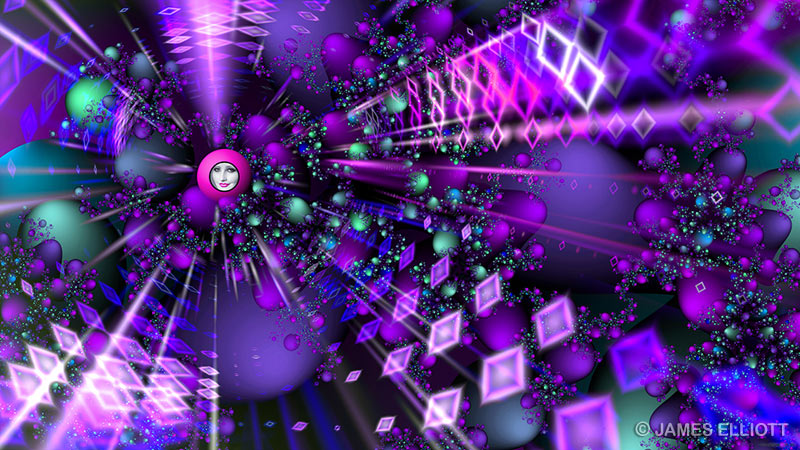 This dazzling, almost hallucinogenic masterpiece, proves unequivocally that the Artist, even five decades on, is absolutely at the height of his creative powers. This is incredibly rare. Most artists burn out by 30 but Elliott remains not just at the cutting edge, but ahead of the curve again. Elliott has always taken on the huge themes in Life, constantly questioning existence and Man's innate inability to comprehend it. This image also hints at the concept of survival in a fundamentally alien, but beautiful Universe. The image was as complex as it looks to create, involving CGI, photography and three dimensional fractals. An artistic tour de force which is absolutely state of the art. Stunning use of colour.