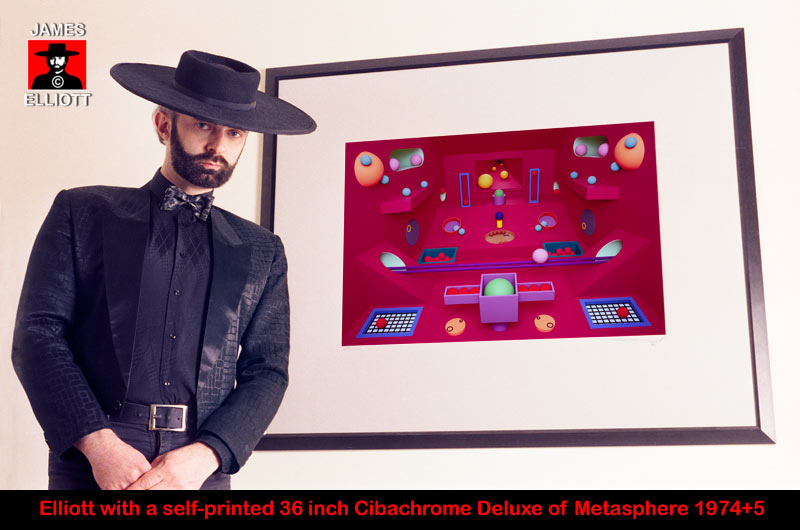 Although the colour photographic printing methods I have used over the last 50 years have been challenging and fraught with difficulty, I have no regrets, as historically it has enabled me to print to a standard which would otherwise have been impossible. It helped me create an art of much enhanced power. From the very earliest days people always enquired "Who does your printing?" and many extreme comments were made such as, "The quality just leaps off the walls" or as one put it "Absolutely attacks the senses!". Praise enough to make it all worthwhile and in one's formative years, encouragement matters. As I have commented many times, I no longer care about opinions as I now philosophically understand what they are, and once you do, they become insignificant. Young students find it difficult to understand this strength and sometimes ask if I am feigning indifference. No I am not, I genuinely don't care. I'm the expert around here and I know what I am doing. Only someone unsure of themselves asks for approval. If after 50 years I don't know what I am doing, may the Gods help me! If I had listened to everyone else I would never have colour printed at all, as in 50 years and a lot of photographers later, I never met or heard of anyone who did their own colour darkroom prints. This amazed me. Anyone who has ever heard different renditions of a piece of classical music by different orchestras, will tell you how different they are. Sometimes it is hard to believe it is the same piece of music. Which is correct? Who knows? But you can be sure of one thing. My prints are exactly how they should be. The best they can be both technically and creatively. Technology will change everything now of course, as printing via supreme quality ink jet printers is much simplified and the results magnificent in the right hands. You still need to train your eye to finely tune colour, which takes years, but most of the technical issues outlined here are eliminated. You also need archival expertise and so on, which frankly few people have. I have heard some big name artists say very stupid things in this regard. Computers have their own lexicon of problems, I know, but I nevertheless welcome these fabulous advances in technology, as it means less "fencing with science" and more creativity. Any masterpiece is always a lesser part technique and a greater part creativity. What is astonishing in these times, is that creativity at a certain level is common, but technical mastery, without which creativity is drastically limited, is almost never there. The caveat is that although creativity is the greater part of art, technical mastery exponentially expands creativity and the lack of said technical mastery limits it. Technical inadequacy, which is extremely common, is like driving with the hand brake on. Technical virtuosity is like a creative turbo kicking in. One is a boost, the other is an inertia drag. Digital imaging has revolutionised image creation forever, as has technology in music. People sometimes make fatuous remarks like 'Oh you could do that with a computer nowadays'. Ignorance abounds. Well if you could dream up the original idea in the first place, that would be a start, but that is something uniquely Elliottonian. Sorry, I'm taken. You cannot be me. Anyway, having pioneered cyber art and being an absolute master of it, let me assure you that even if the idea was yours, you cannot create a Metasphere with computers. You could get something close and it would still take a month of Sundays to create, but in the end it would still not quite have the authentic verisimilitude that Metasphere displays. I could do things just as good as that with computers, I have, but not the same. Computers and digital music never made a musician out of anyone and mastering photographic technique won't make an artist out of you, but if you are one, then technology has just thrown you an absolute miracle. Written by James Elliott JAMES ELLIOTT .com © JAMES ELLIOTT 2019 4280 words with 11 illustrations |