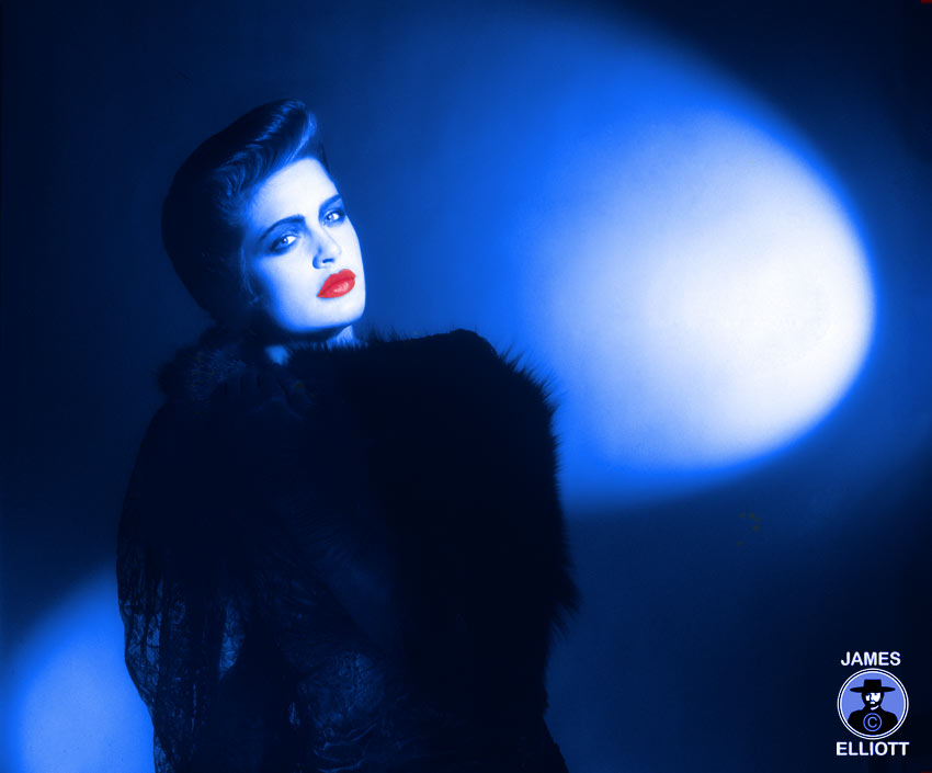 Elliott's latest masterpiece just oozes opulence, elegance and class. With the trade mark colour palette very much in evidence, with the flash of scarlet on monochrome blue, this is a completely timeless piece. The subtle presence of furs and lace, give the image a feeling of affluence and style. Sheer class. The image also displays Elliott's complete mastery of lighting and his ability to create atmospere and mood ex nihilo.