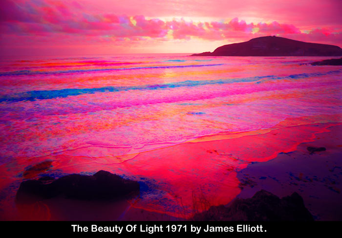 One day in 1971, Elliott was in his lilac and purple Darkstudio in Devon, thinking about the permutations, potential and possibilities of photography, when he suddenly had another, even greater epiphany. He says it came in a 'flash of revelation', that photography was technically and creatively a nascent art form and largely terra incognita. Elliott says he can still remember exactly where he was standing, next to his MPP enlarger. He was the first to see and proclaim Photography 'more powerful than painting' and was able to explain exactly why. He was also able to see the massive unexploited creative potential of Photography. He states "Even more exciting was that I knew the other photographers hadn't seen it. Photography at that time was a kind of observational recording, however skilled, but I knew I could pull original ideas straight out of my imagination. I didn't hesitate. It was like discovering a huge treasure chest of diamonds on the sea shore, of some far-flung paradisiacal location. You look around furtively and start thinking "Oh my God! Nobody's seen it! And you just know in a flash, you want to take it and run with it!"