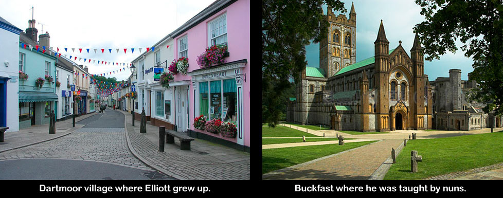 At age 7 the Elliott family moved from Ashburton to the neighbouring village of Buckfastleigh. Buckfast is famous for it's huge abbey. It is the only monastery rebuilt after their dissolution by King Henry VIII and used for its original purpose.