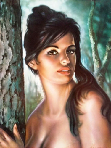 During the early part of his work fit, Elliott would often work up until midnight and then phone friends and meet up in the nightclubs of Torquay, just to wind down, usually until 3 a.m. If you can call that winding down. One evening, whilst setting off on such an excursion from Buckfastleigh, he fortuitously crossed paths with the beautiful 17 year old Mars. She kept offering the twenty-two year old Elliott sweets and he quipped, "I'm not sure I should take sweets from a stranger." He never got to the clubs. She became his girlfriend, model and muse and they were together for 5 years. With long flowing hair, she was very tall at 180cm, in fact the same height as Elliott himself. Mars was exceptionally long-legged, elegant, curvaceous and beautiful. The meeting was important, as the nature of the artist's work changed in many ways, after he met her.