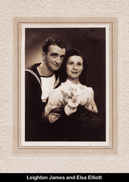 Elliott's father, Leighton James, was in the British Navy and whilst stationed in Belgium, had met the beautiful sixteen year old Elsa, whom he married and brought back to England. Elsa was a glamorous, young city girl.