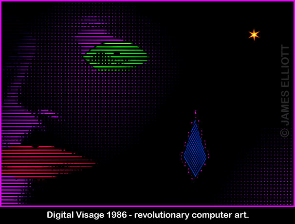 In 1986 Elliott created a very important image entitled 'Digital Visage'. An absolutely cutting edge piece of cyber art. This was a glimpse of things to come and having championed Photo Art, he would, for the second time, pioneer a revolutionary new art form. Elliott's first experiments in computer technology predate Photoshop. Elliott used amongst other things, the Quantel Paintbox and later, the Kodak Premier system. Elliott recalls perceiving a graphics tablet as 'The Canvas Of The Future'. Which was probably about right.