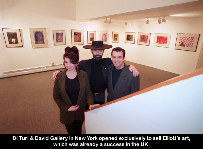 With his Art still ahead of the curve for the art world, in 1994, the DiTuri & David Gallery opened in New York, specifically to sell Elliott's Photo Art. This was a pioneering move. The gallery was in New York's fashionable Mercer Street, opposite the Guggenheim Museum in Soho. Very much the Art District of New York. Elliott, by this time had already exhibited at Trump Tower and West 57th Street - the 'Cork Street' of New York. The gallery was the brainchild of Tami Di Turi and David Murphy. It was spacious and modern with 2 floors. The initial show to open the gallery was entitled 'Exotic & Erotic. The opening night was a huge success with over 300 guests.