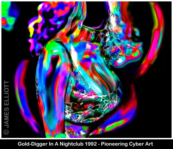 Elliott takes an extended stay in Los Angles to photograph American models and also to study digital imaging computer technology. This would prove pivotal. Although Elliott did not realise it at the time, he would never return to the type of Art Photography he pioneered in the Seventies and Eighties. The erotica did continue as photography, as Elliott believes there is no better medium for erotic art. The photography continued to be an element in some computer art and sometimes vice versa, but the great photographic orchestrations of reality for the camera, were never revisited. The 407 hour epic, 'Superchromatic Spectrosynthesis' of 1986, was the last. It should be noted that Elliott is an innovator and creates something fresh every time. He has no wish to create a recognisable style, by repeating the same motifs time after time. His style is originality, which requires vastly more creativity. He has created enough new directions in art, for hundreds of so-called 'styles'. The latter are really just recognisable mannerisms and motifs. Repetition, by any other name.