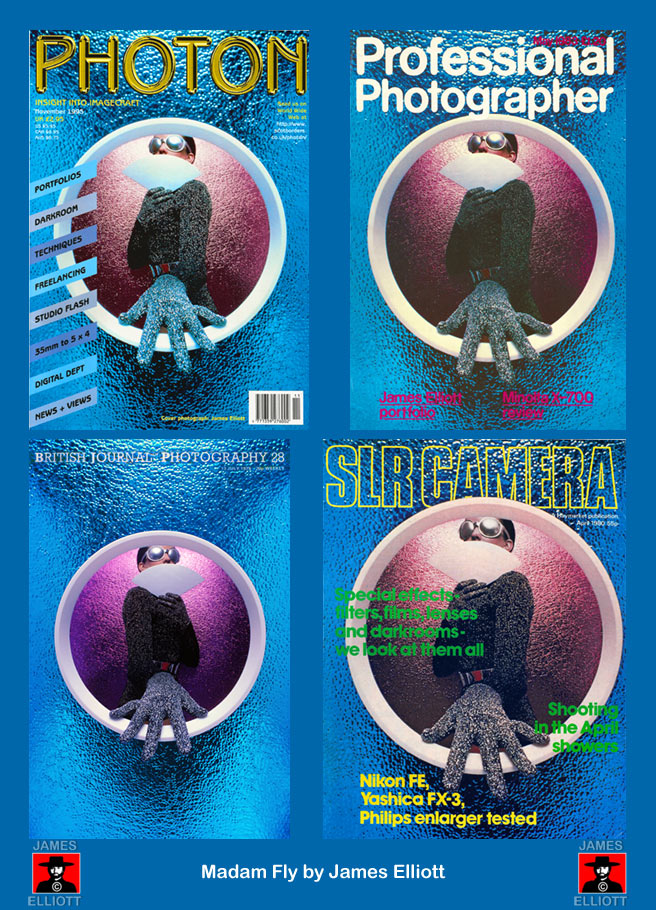 ‘Madame Fly’ is definitely one of Elliott's most famous and iconic works. A classic image, it has been very widely exhibited and published all over the world, including on four magazine covers and a photography yearbook. Decades on it is still massively popular. Highly futuristic at the time, it still looks edgy today. One of Elliott’s hallmarks is undoubtedly the ability to create works which stand the test of time. The litmus test for all great art. The space age feel makes it more at home in the third millennium than the second and the colour palette here is metallic and ultra modern; the perspective, startling and dramatic.