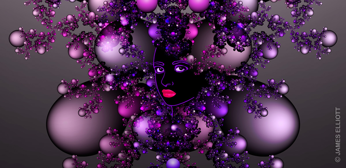 The amazing detail reveals the wonder of this extraordinary image. It was created using innovative computer technology to create a superb, radically original vision. Looking almost like nuclear, self-replicating, egg shaped strings. Elliott perpetually explores terra incognita in the domain of the visual. And this cybersymphony, as the artist terms them, is a great example. Although completely artificial, the image somehow captures the force behind Nature and its ability to reproduce itself and perhaps hints at the way humankind increasingly controls and shapes the natural to his own purpose." |