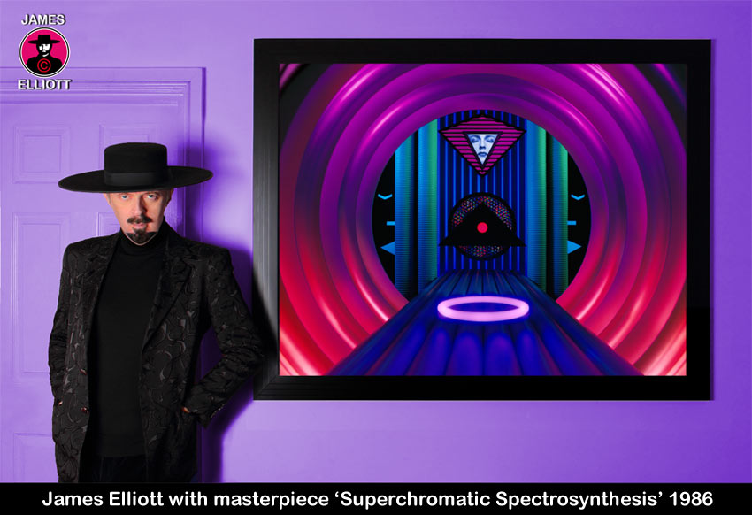 An entire summer from May to September 1986. This ground-breaking 'Light Sculpture' took Photography to a new level. Note the barely perceptible sentinel faces. A dazzlingly imaginative piece, the technical virtuosity is equally staggering. 165 test exposures, 40 Polaroids, 21 lights, a 76 action exposure sequence.... the list goes on. The image predates and is superior to, the computer imagery of the Millennium era. 'Superchromatic' is one of the supreme achievements in the history of Photography.